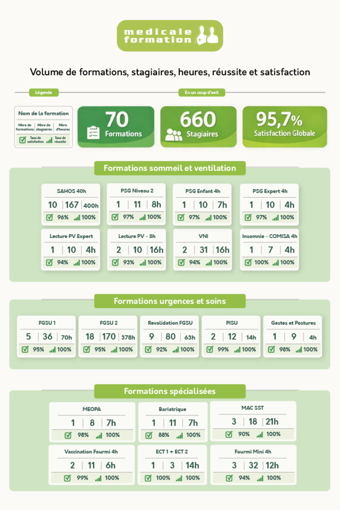Dans le cadre de notre certification QUALIOPI, nous publions ici les résultats des évaluations de nos formations, ainsi que les volumes de stagiaires et de sessions de formations.